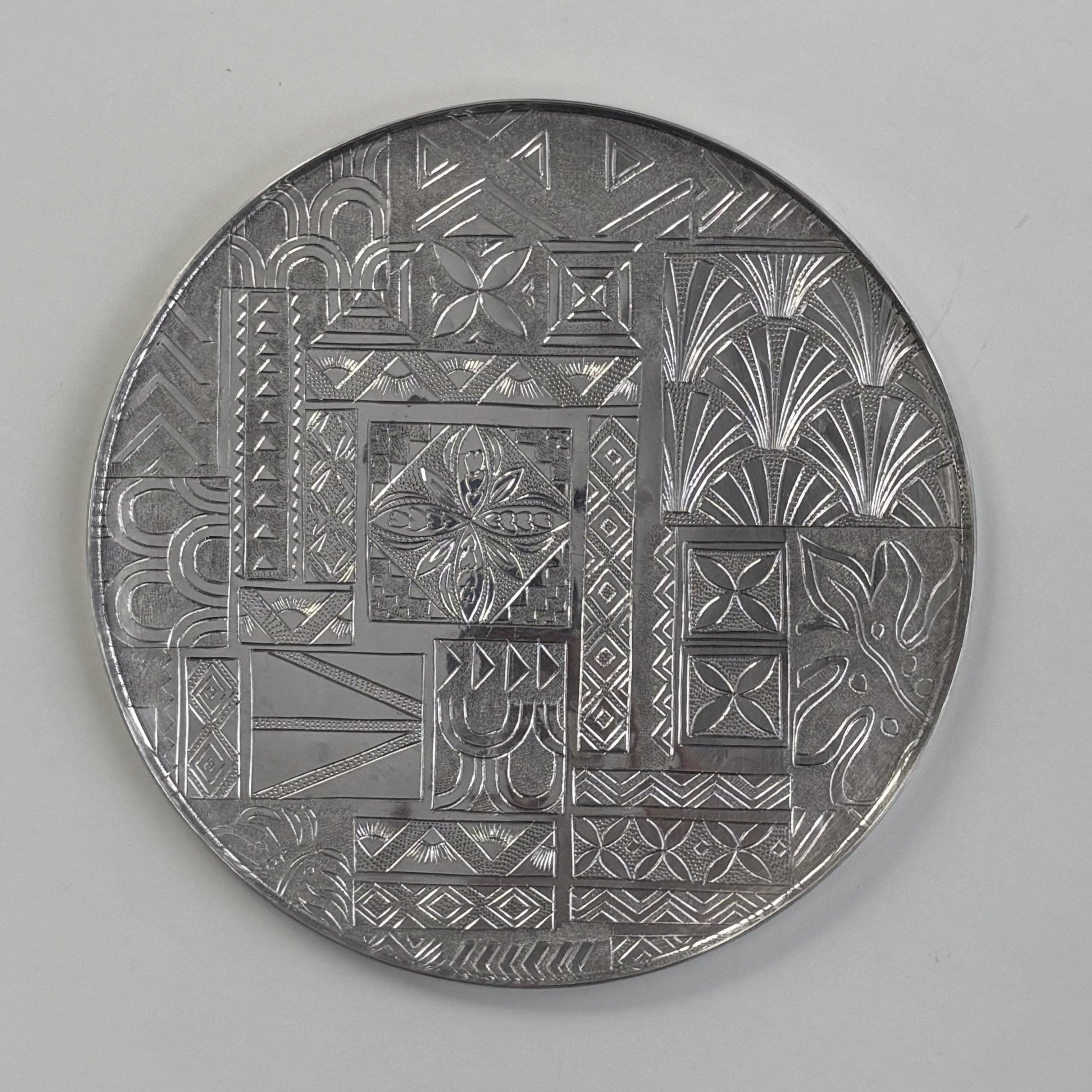 Metal Serving Tray - Round Art Deco