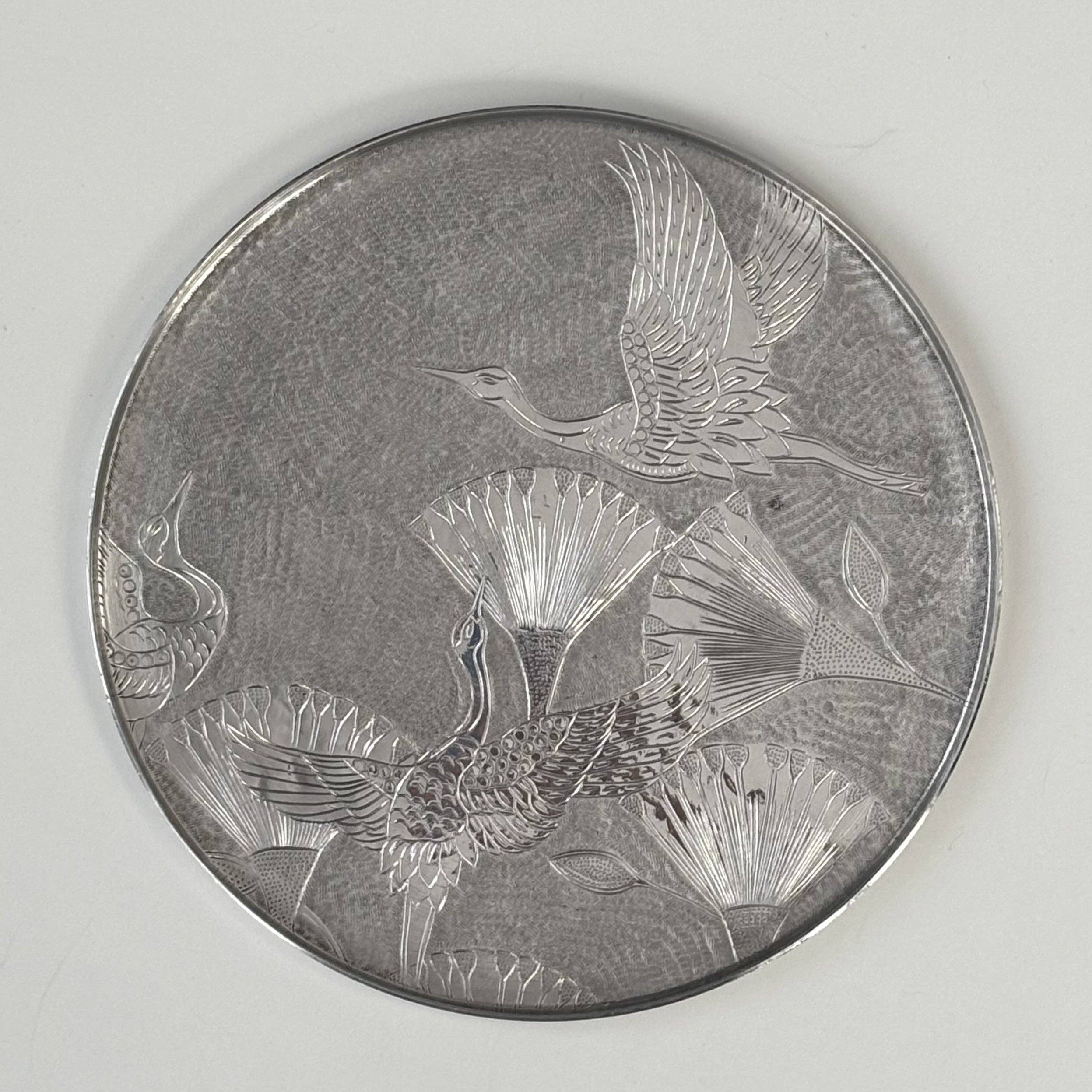 Metal Serving Tray - Round With Birds